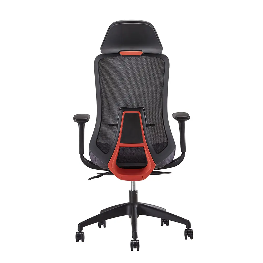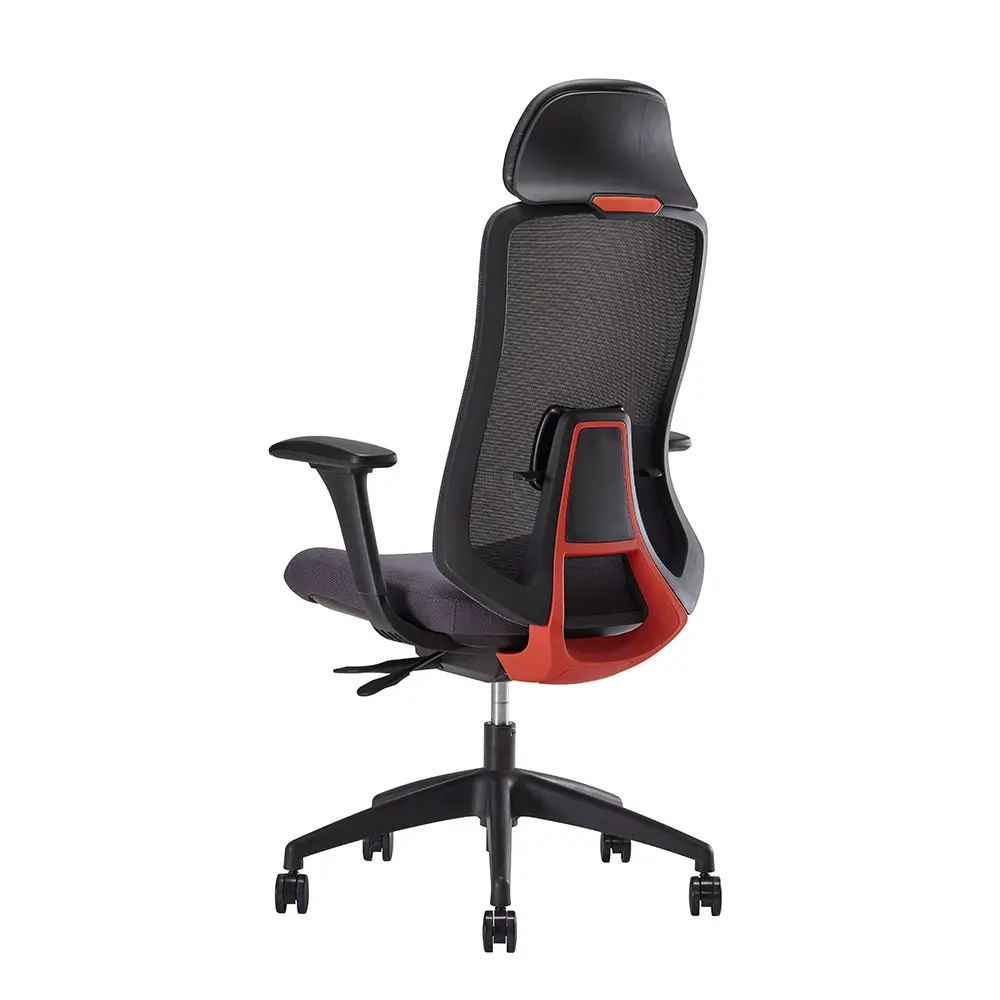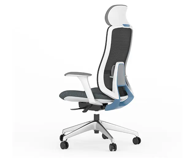 - Respaldo y apoyacabezas en Poliamida y fibra de vidrio en color azul o naranja.